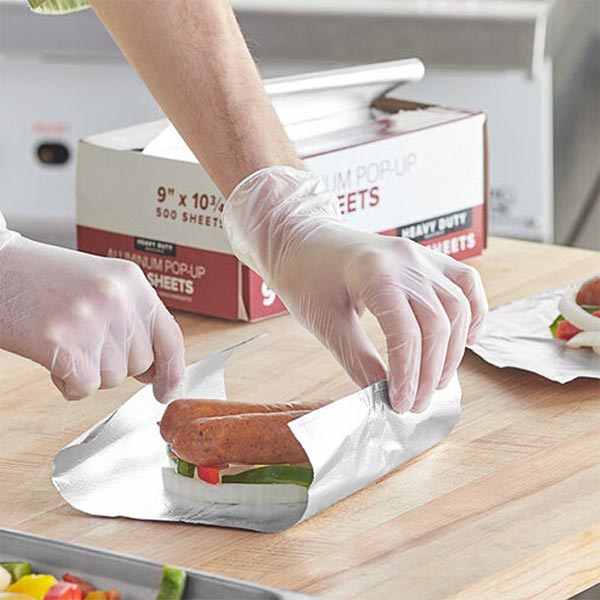 Pop-up aluminum foil sheet is a pre-cut and interfolded aluminum foil sheet designed for convenient, one-by-one dispensing. Each sheet automatically “pops up” when the previous one is pulled out, improving efficiency and hygiene in commercial and household applications.